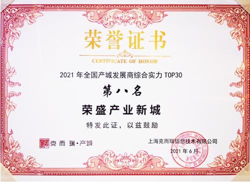 6月9日,易居克而瑞“第五届地新引力峰会产城发展论坛”在上海举行,会上发布了2021年产城发展形势研究成果和“全国产城发展商综合实力TOP30”榜单,荣盛产业新城荣获第八名。
